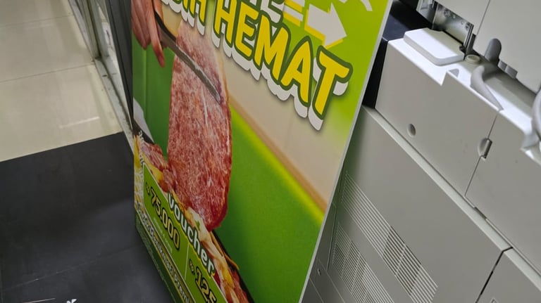 Pelayanan Digital Printing Indoor sebagai Media Promo yang biasa dipasang dalam ruangan seperti; Y Banner, Roll Up Banner, Foamboard, Alfaboard, Poster, Stiker, dan lain sebagainya