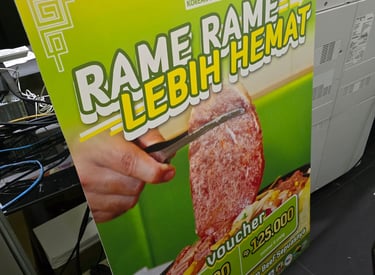 Spanduk besar untuk acara atau promosi, dengan warna cerah dan tahan lama.